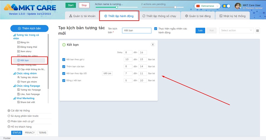 Dưới đây là các bước kết bạn tự động với phần mềm MKT Care:
